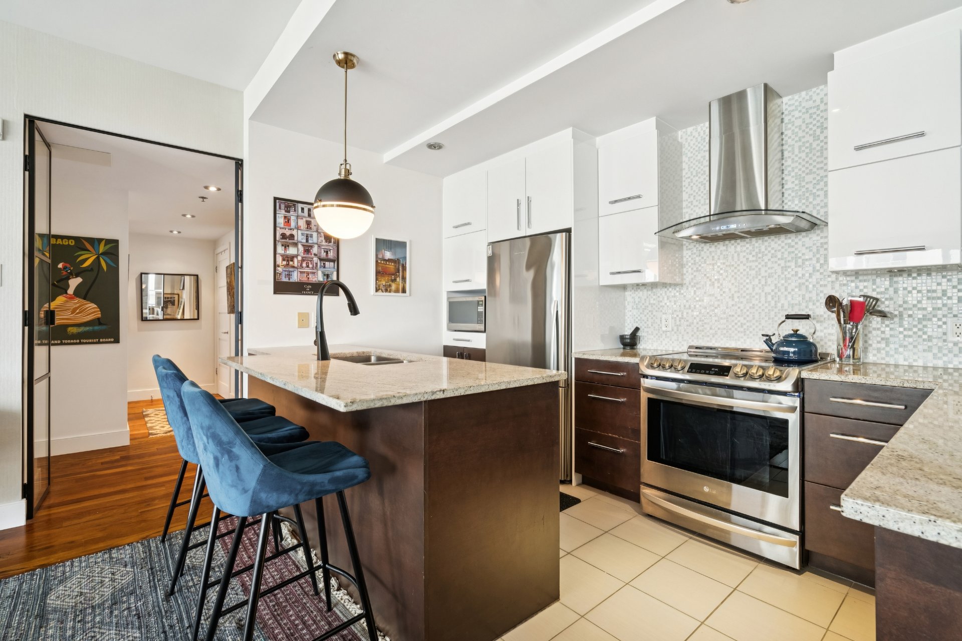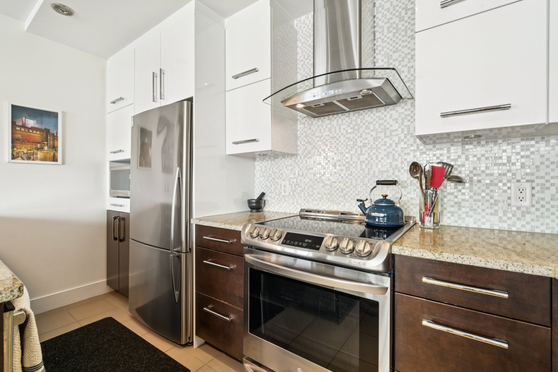 Spacious 1,161 sq. ft. condo in the heart of Cité-Jardin. Filled with natural light thanks to large windows, it offers 2 bedrooms including a primary with walk-in and ensuite, a second full bathroom, a modern kitchen, and 2 balconies. Tandem garage for 2 cars and storage included. Enjoy premium amenities: indoor and outdoor pools, gyms, and secure indoor parking. Ideally located near the golf course, Maisonneuve Park, Botanical Garden, and just a 5-minute walk to L'Assomption metro.